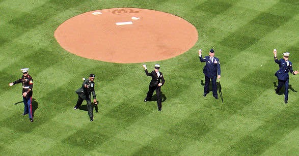 Opening day in Major League Baseball has certain traditions which must be observed. The visiting team must be introduced. The home team must be introduced. American flags must be displayed and aircraft must fly over.